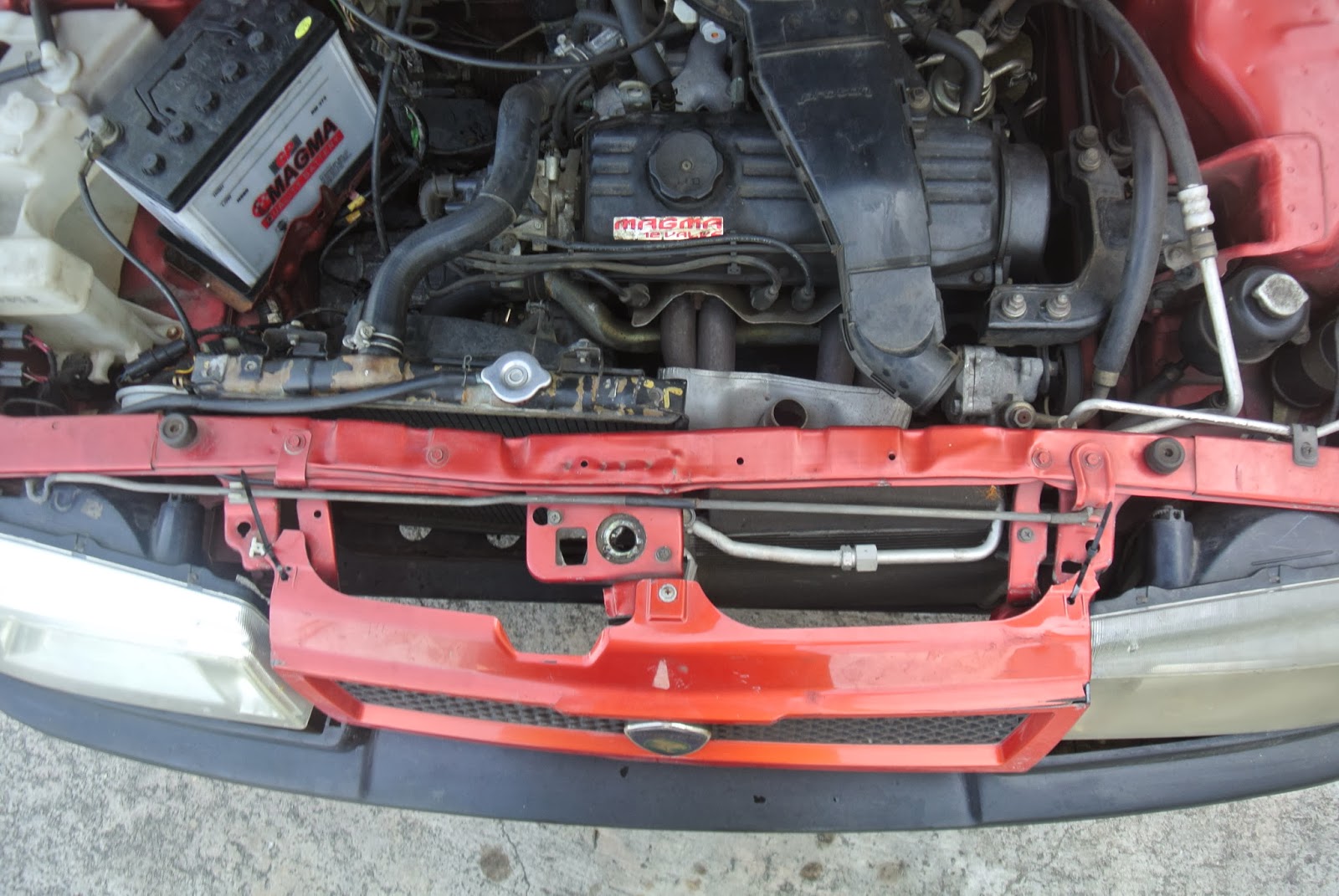 The poor old girl must have been in a few front-enders (and side-enders etc) in her life. The bonnet was almost completely sustained by an inch-think layer of wob. At some point the much frequented bodyshop seem to have given up and wrapped the most prone quarter with a Visit Malaysia sticker instead of finishing a job. I think they probably got a few stickers done so they can just re-apply as and when the next understeery incident takes place.